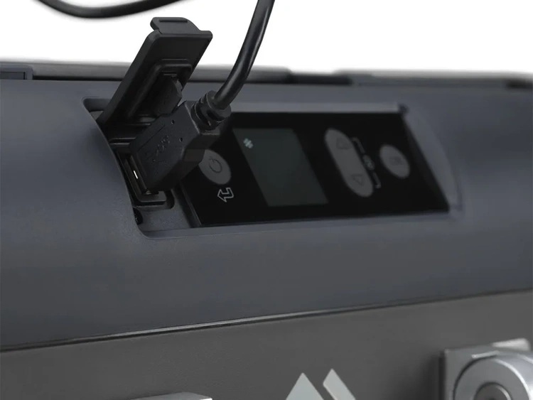 Lodówki samochodowe z serii CFX5 są wyposażone w kolorowy wyświetlacz o wysokiej rozdzielczości, który pokazuje temperaturę i stan pracy lodówki. Ekran jest wyposażony w kilka funkcji ochronnych, takich jak pokrywa odporna na zarysowania, ramka klasy IP65 chroniąca przed kurzem i rozpryskami wody, dzięki czemu możesz czuć się pewnie w każdej podróży. Zaktualizowany port USB został przeniesiony obok panelu wyświetlacza, co zapewnia szybszy i ergonomiczny sposób ładowania przenośnego urządzenia inteligentnego. Intuicyjny interfejs użytkownika pokazuje napięcie, stan połączenia Bluetooth / WiFi i temperaturę wewnętrzną na kolorowym wykresie. Parametry pracy lodówki samochodowej można regulować jednym naciśnięciem przycisku.